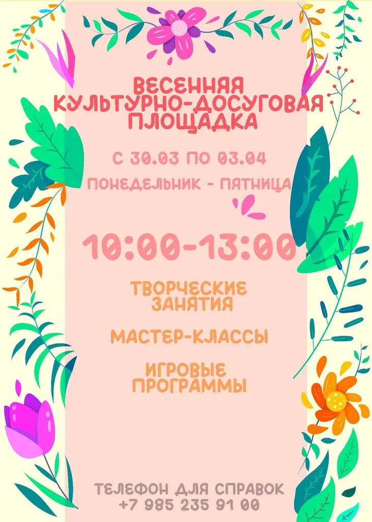 Время: 30 марта – 3 апреля, 10:00 – 13:00